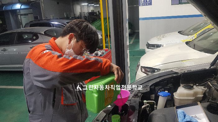 [작업 전 상태] : 부동액 오염이 심각했고, 앞 브레이크 패드 상태가 90%이상 마모되어있다. [작업 후 상태] : 부동액 신품으로 교환해서 양호해졌으며, 앞 브레이크 또한 새것으로 교환하였다. [훈련생 소감] : 평소 실습을 바탕으로 훈련 받음으로써 자가정비 시 어려움이 없었으며, 자가정비를 함으로써 정비에 대한 이해도와 능력을 배양 할 수 있는 좋은 기회가 되었다. 실습과는 다른 감회와 느낌이었고 자가정비를 통해 자신감이 상승하였다.